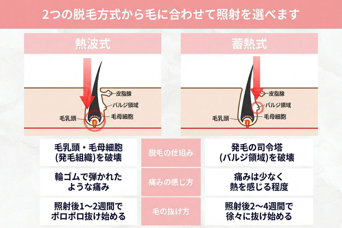 当サロンでは、シングルショット(ライト1度当て) ダブルショット(ライト2度当て)から施術を選べます。